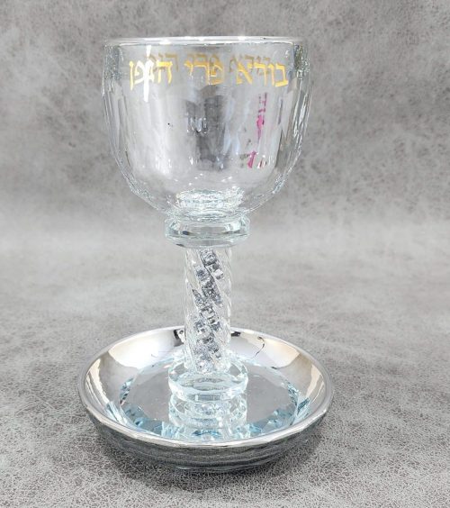 גביע קידוש מהודר מקריסטל איכותי כולל צלחת להידור וחריטה – בורא פרי הגפן