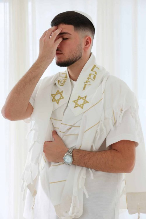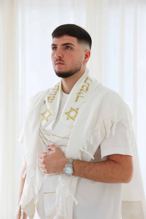 טלית מהודרת "מגן דוד זהב לבן":