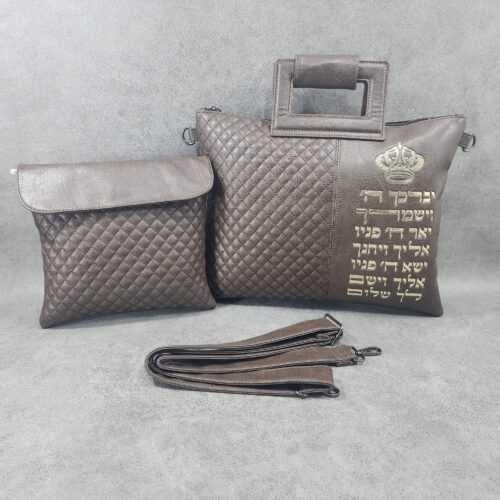 סט כיסוים לטלית ותפילין "כתר כהניך זהב חום" הכולל: