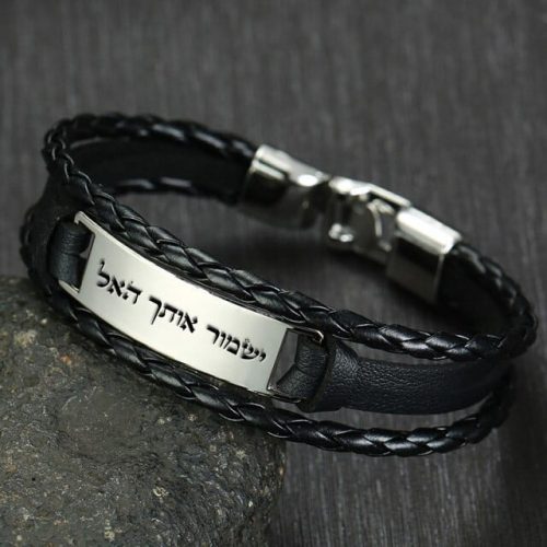 צמיד לגבר עם חריטה אישית- צמה קלועה 7.